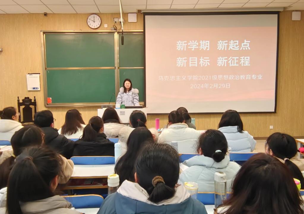 2月29日上午,太阳集团tyc59972021级思想政治教育三班、四班在社科楼515教室召开“新学期,新起点,新目标,新征程”主题班会。辅导员高小佳及2021级思想政治教育全体学生共同参加本次班会。班会由辅导员高小佳主持。