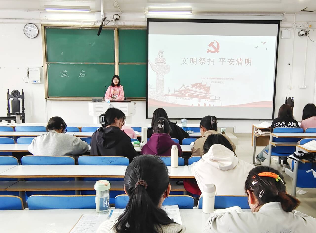 4月3日上午,太阳集团tyc59972021级思想政治教育全体学生在社科楼514教室召开“文明祭扫,平安清明”主题班会。太阳集团tyc59972021级思想政治教育全体学生参与此次会议。会议由辅导员高小佳主持。
