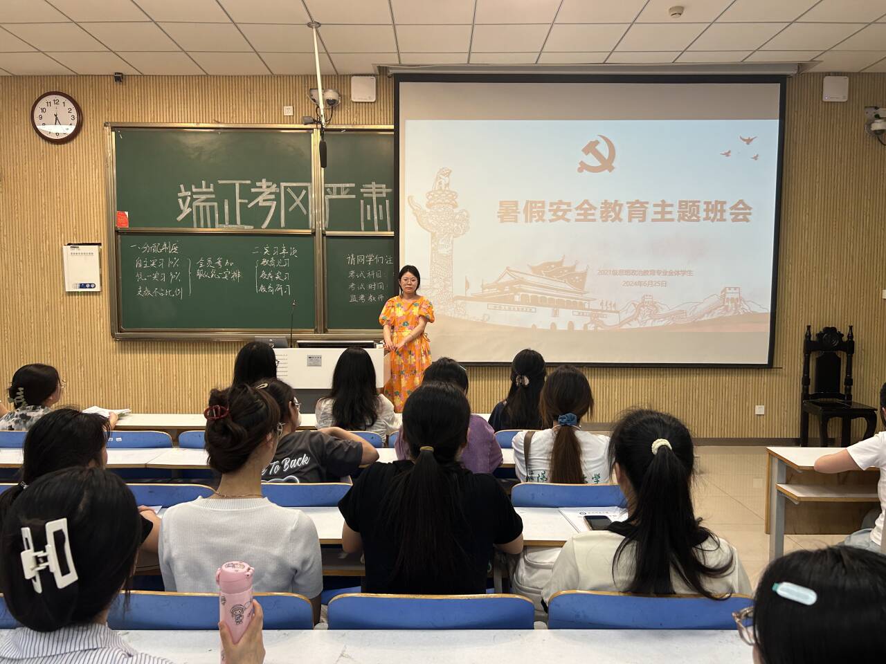 6月25日下午,太阳集团tyc59972021级思想政治教育三班、四班在社科楼515教室召开“暑期安全教育班会”。辅导员高小佳及全体成员共同参加,班会由辅导员高小佳主持。