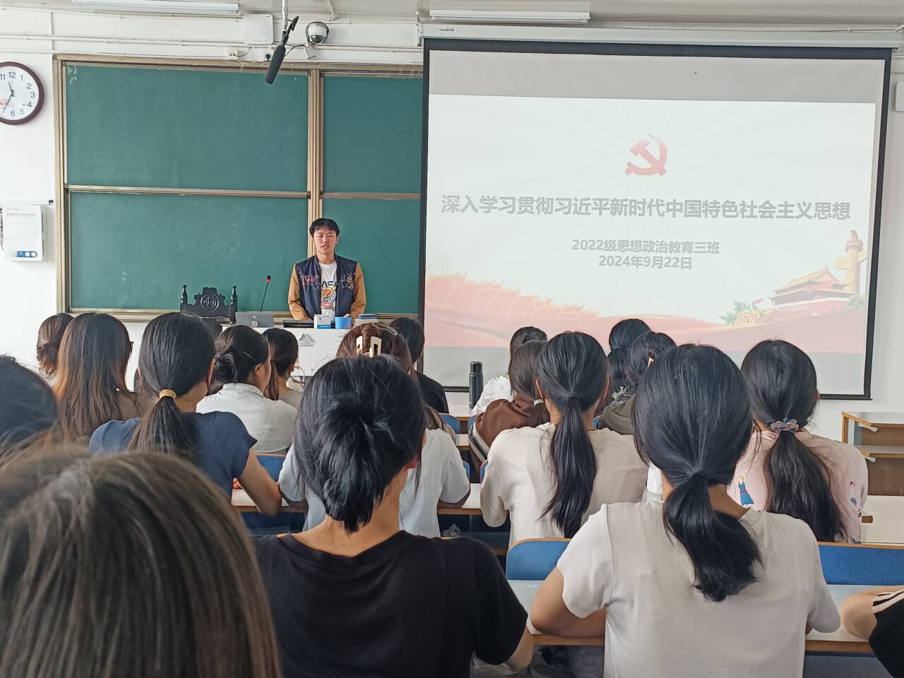9月22日上午,太阳集团tyc59972022级思想政治教育三班在社科楼514教室召开深入学习贯彻习近平新时代中国特色社会主义思想教育主题团课。我院2022级思想政治教育三班全体成员共同参加此次团课。团课由团支书余浩洋主持。
