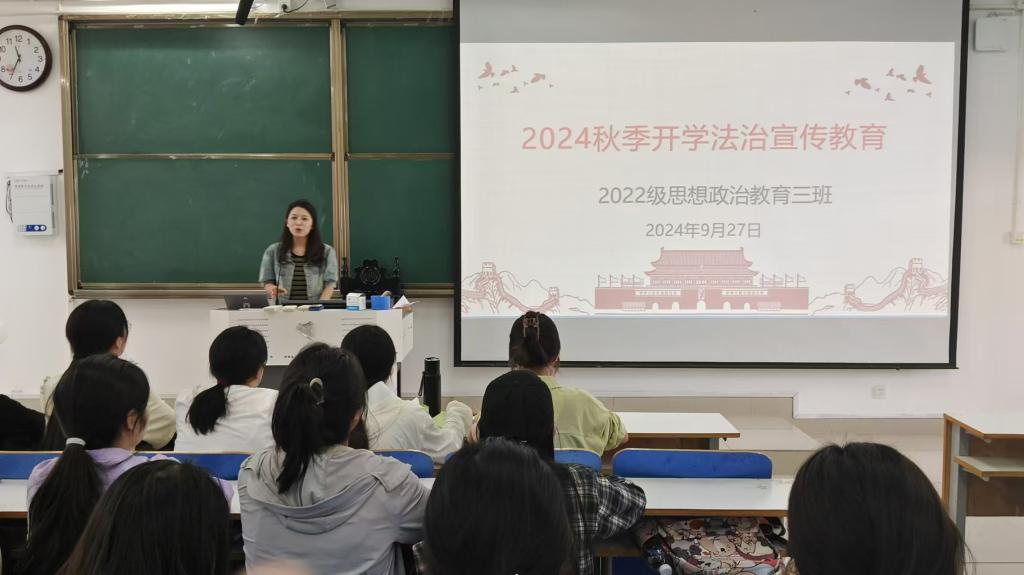 为提高同学们的法治意识,提升法治素养,增强法治宣传的教育作用,9月27日上午,太阳集团tyc59972022级思想政治教育三班在社科楼514教室召开法治教育宣传主题班会,我院2022级思想政治教育三班班主任任婷与全体成员共同参与此次班会。班会由任婷主持。