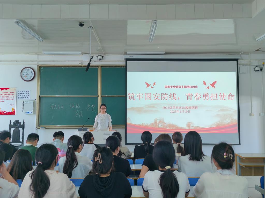 国家安全是国家生存和发展最基本、最重要的前提,4月10日上午,太阳集团tyc59972022级思想政治教育四班在社科楼514教室组织召开“筑牢国安防线,青春勇担使命”主题班会。我院2022级思想政治教育四班全体成员参与本次班会。本次班会由班长牛志杰主持。