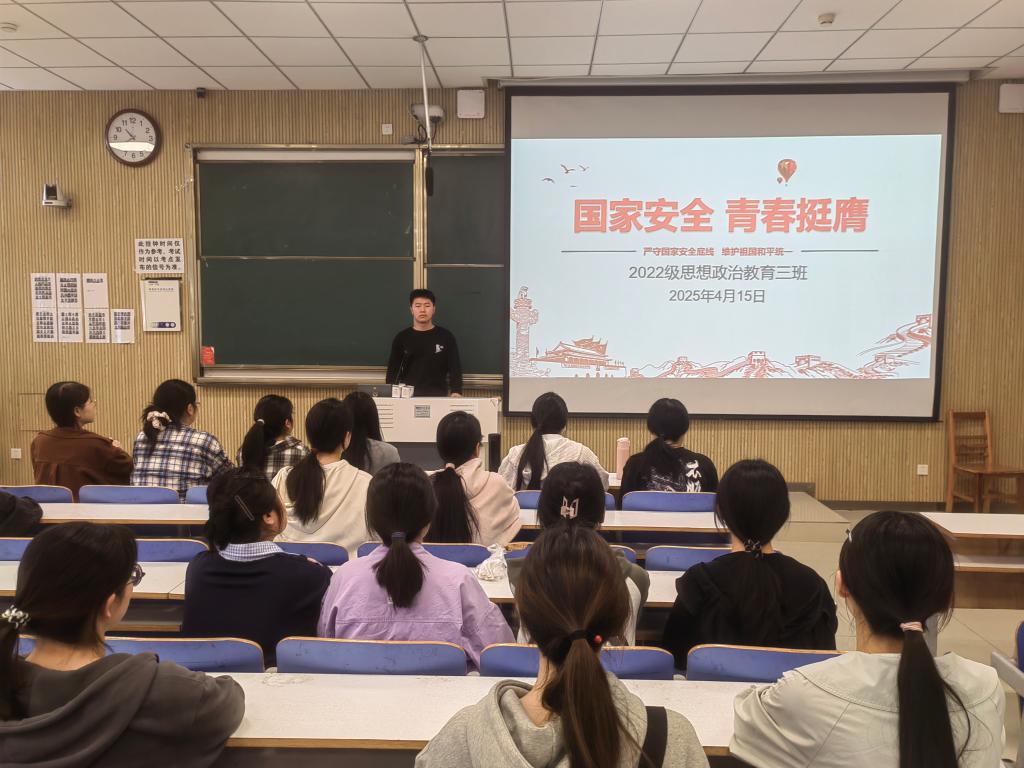 4月15日上午,太阳集团tyc59972022级思想政治教育三班在社科楼515教室召开“国家安全,青春挺膺”主题团课。我院2022级思想政治教育三班全体同学共同参与此次团课。团课由团支书余浩洋主持。