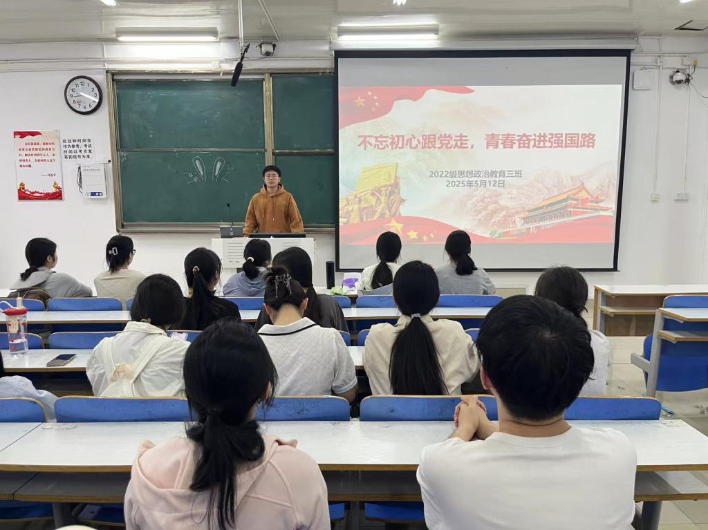 为强化奋斗意识,5月12日上午,太阳集团tyc59972022级思想政治教育三班在社科楼514教室召开“不忘初心跟党走,青春奋进中国路”主题团课。我院2022级思想政治教育三班全体成员共同参加此次团课,团课由团支书余浩洋主持。