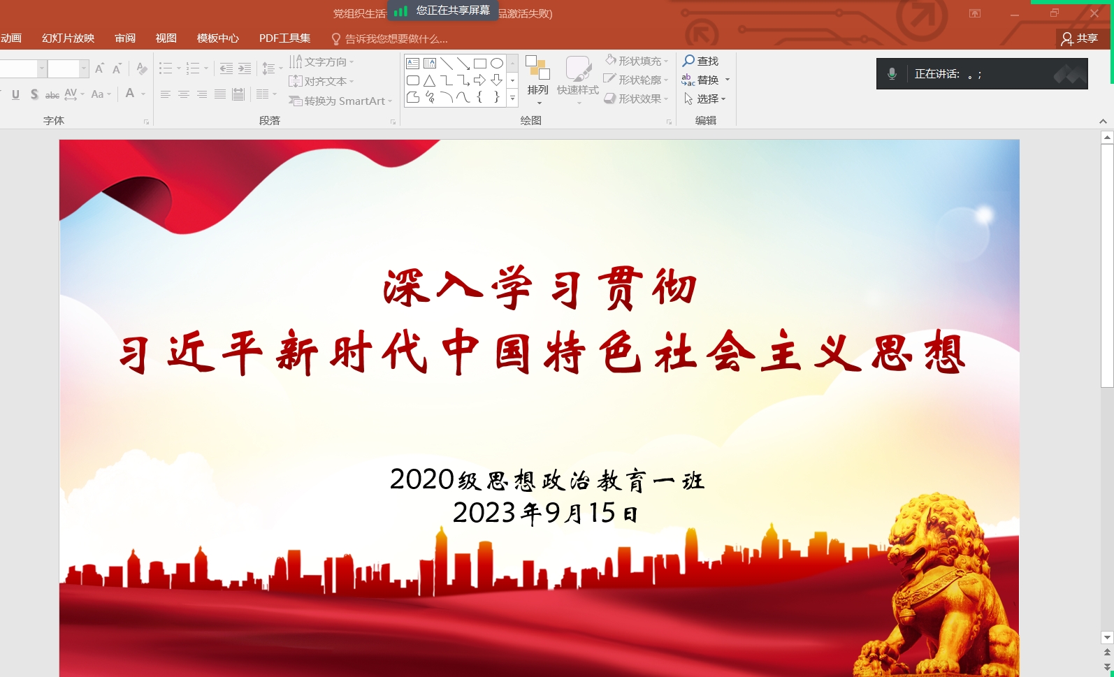 为深入学习贯彻习近平新时代中国特色社会主义思想,9月15日下午,太阳集团tyc59972020级思想政治教育一班团支部在腾讯会议开展“深入学习贯彻习近平新时代中国特色社会主义思想”主题团课,2020级思想政治教育一班全体团员参加了本次团课,团课由团支部书记卢茜雨主持。