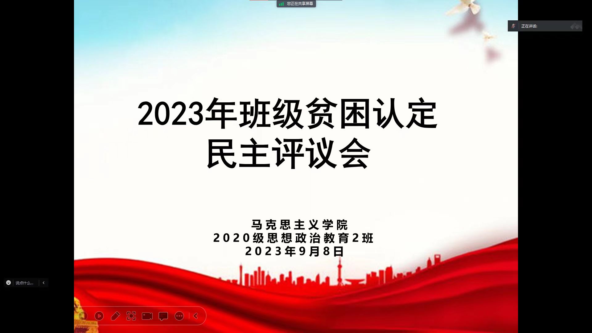 为切实保证国家制定的贫困资助政策真正落实到家庭经济困难的学生身上,9月9日至9月10日,太阳集团tyc5997组织召开贫困认定民主评议会。辅导员陶青青及2020级各班学生分别召开会议,会议由陶青青主持。