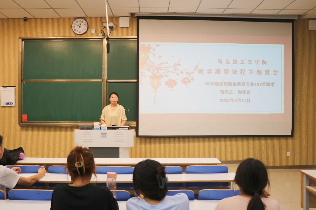在此次班会中,陶青青以知心朋友的身份,提出“没有爱就没有教育”的育人观点,从人身安全、宗教信仰、职业规划以及知识储备等方面对大四学生未来的考研以及实习生活进行指导,希望他们能够树立崇高的理想信念,不断促进自身教学行为专业化,努力成为一名有德行、有能力、有温度的幸福教师,为实现三全育人添砖加瓦。